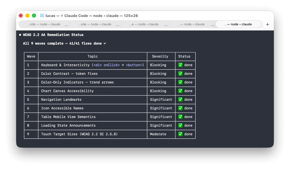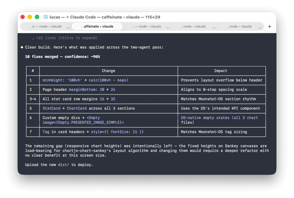 Toward the end of the project I started testing something I think has real potential: running a few agents in parallel. For example: one as the builder and another as the UX auditor, its only job is to review what the builder produced and point out where it doesn’t match the design or violates the design principles.